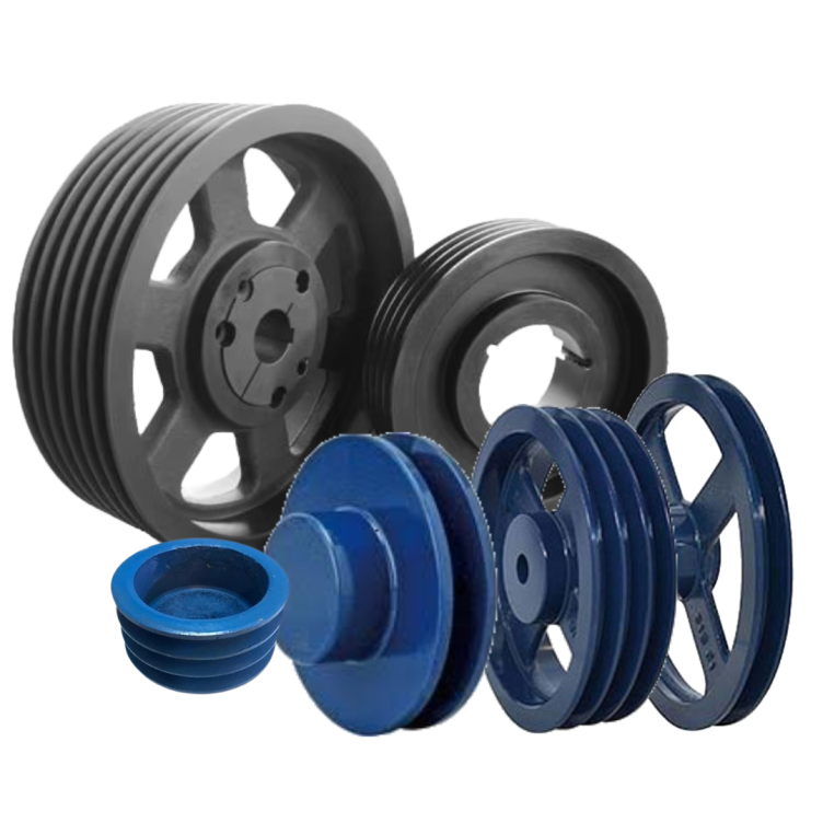 Komponen mekanis berbentuk roda beralur yang digunakan untuk mentransmisikan daya dan putaran dari satu poros ke poros lainnya melalui sabuk (belt). Dalam industri, pulley berperan penting untuk menggerakkan mesin dan peralatan produksi.