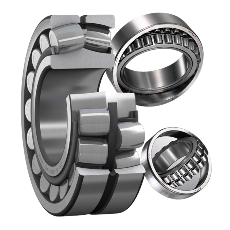 Bearing dengan dua baris roller berbentuk tong (spherical) dan raceway luar berbentuk bulat, sehingga mampu menyesuaikan ketidaksejajaran poros serta menahan beban radial dan aksial berat secara bersamaan.