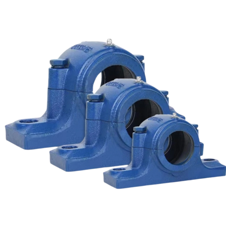 Dudukan bearing (bearing housing) yang berfungsi untuk menopang poros berputar dan menjaga posisi bearing tetap stabil. Biasanya digunakan bersama spherical roller bearing agar dapat menyesuaikan sedikit ketidaksejajaran poros.