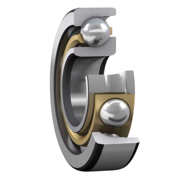 Bearing yang dirancang untuk menahan beban gabungan — yaitu beban radial dan aksial secara bersamaan. Jalur bola (raceway) pada cincin dalam dan luar dibuat miring (ber-sudut) sehingga mampu menahan gaya aksial dari satu arah.