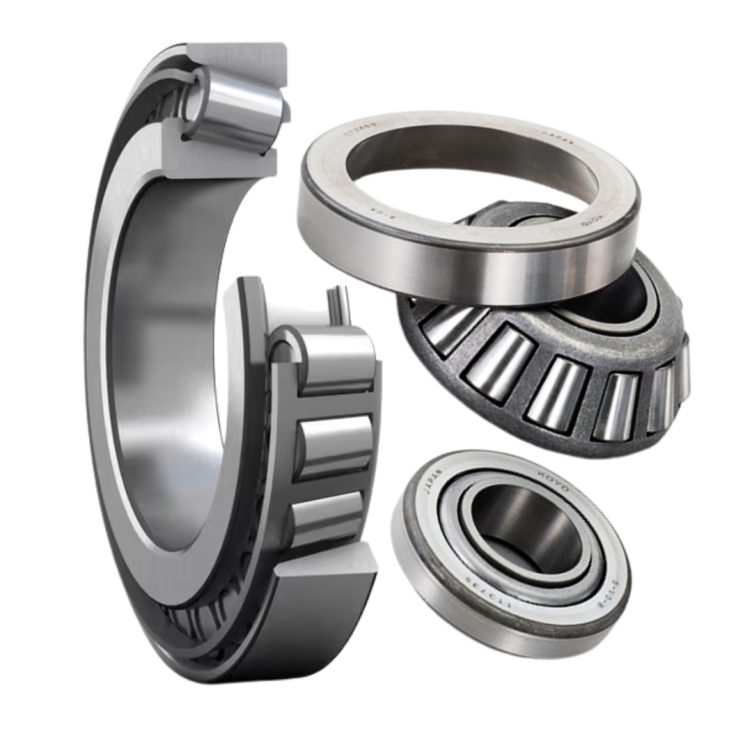 Jenis bearing yang menggunakan roller berbentuk kerucut dan mampu menahan beban radial serta beban aksial (dorong) secara bersamaan. Digunakan untuk menopang poros yang menahan beban besar